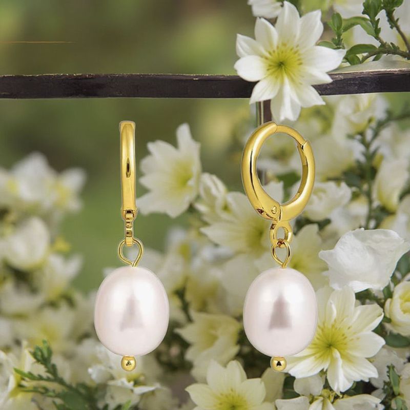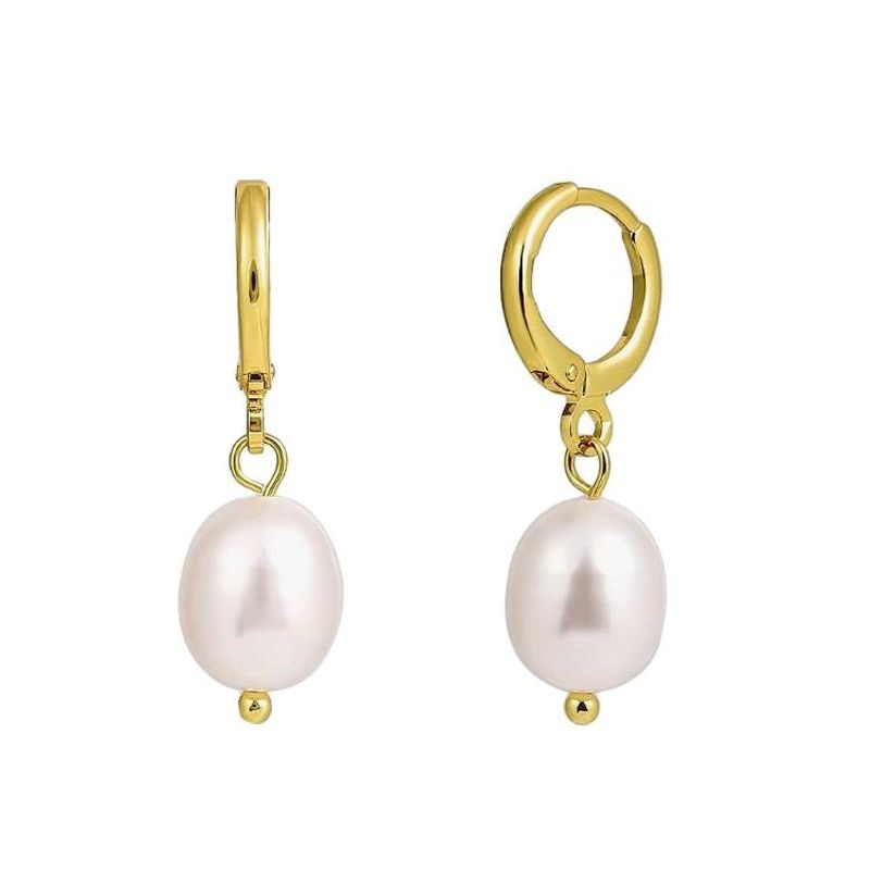 18k Gold-Plated Women's Teardrop Pendant with Baroque Pearl Earrings