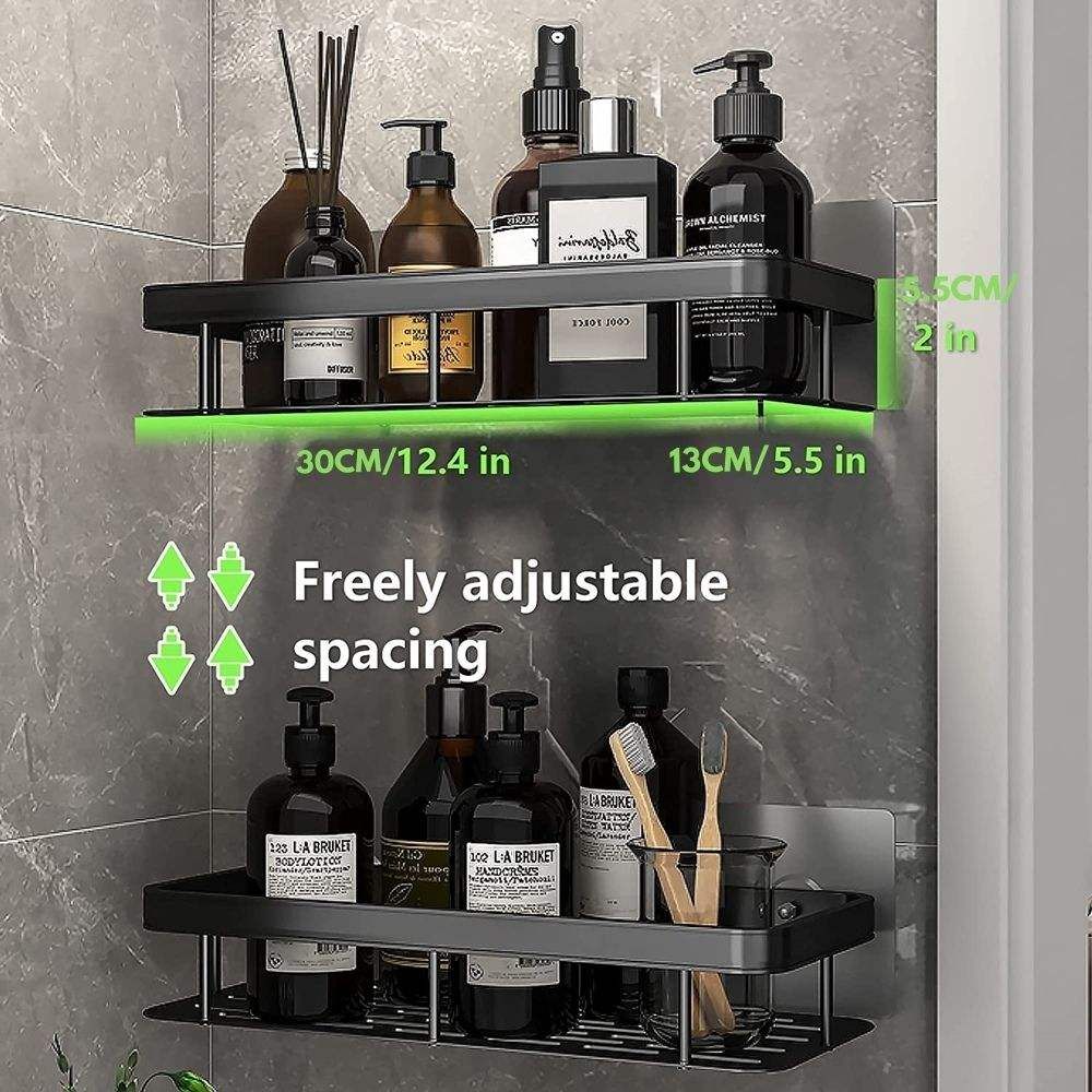 Bathroom Double Shelves Wall Mounted Self Adhesive Kitchen Corner Racks Shower Caddy Corner Storage Shelf