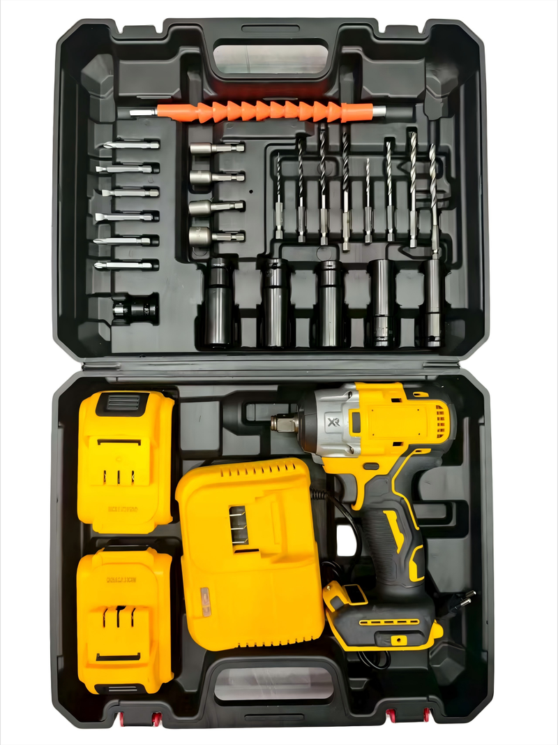 New Model Rechargeable Lithium-Ion Battery Impact Wrench Brushless Impact Wrench Electric Screwdriver Two Batteries One Charger Toolbox Set